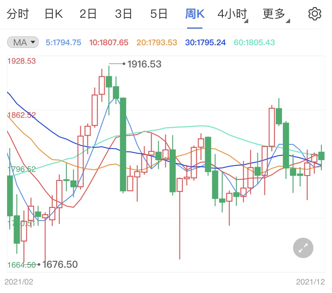 今日周四(12月30日),今日黄金价格小幅下跌,截止发稿,黄金报1798.87美元/盎司,涨幅-0.34%。