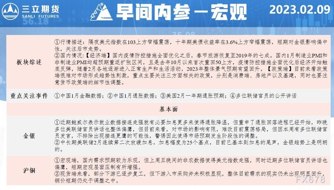 三立期货2月9日早间内参——宏观 来源:正大期货 作者:正大国际期货 时间:2023-02-09 汇通财经APP讯——三立期货期货公司授权文本由“专注期货开户交易及专业行情分析资讯网站”【一期货 www.1qh.cn】转发。