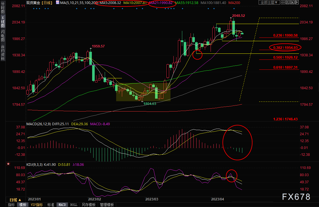 汇通财经APP讯——周三(4月19日)亚洲时段,现货黄金窄幅震荡,目前交投于2002.13美元/盎司附近,美元指数企稳,令多头有所顾忌。隔夜圣路易斯联储主席布拉德表示美联储应该继续加息,倾向于加息至5.50-5.75%区间。其他几位美联储官员讲话也偏向鹰派,美联储5月份加息预期笼罩市场;美债收益率守在数周高位,金价的反弹受到5日均线的压制,技术面短线看空信号延续,金价后市仍面临进一步下行风险。