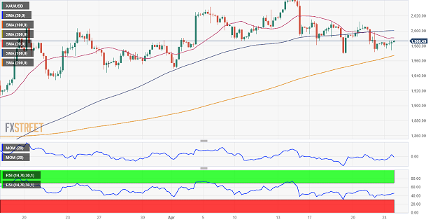 24K99讯 周二(4月25日)亚市盘中,美元指数维持跌势,现报101.20附近。现货黄金短线一波急涨,金价刚刚突破2000美元/盎司大关,日内大涨逾10美元。FXStreet首席分析师Valeria Bednarik最新撰文,对黄金技术前景进行分析。