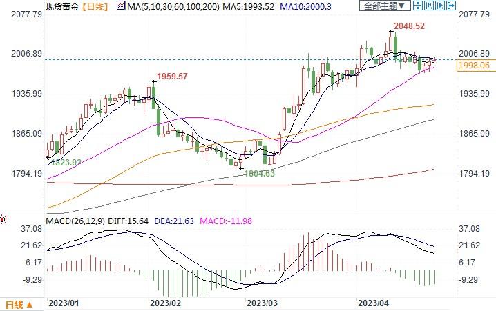 现货黄金日线图北京时间4月26日10:54 现货黄金 报 1998.06 美元/盎司