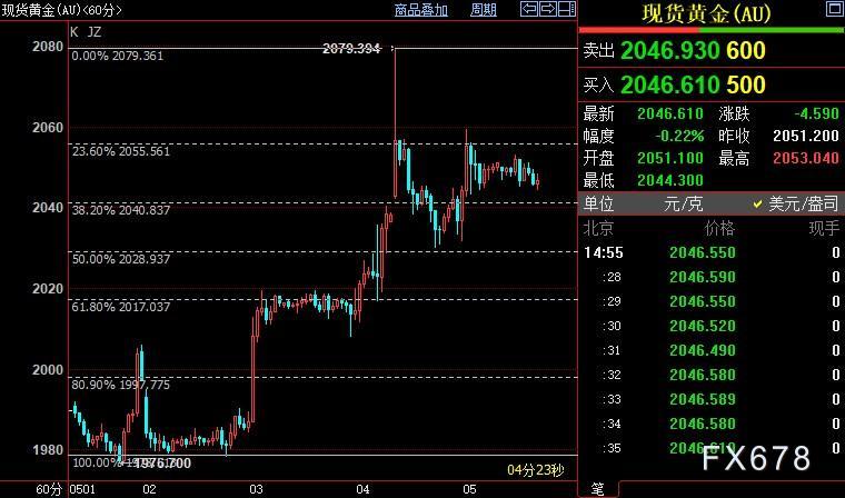 在美联储暗示可能暂停加息后,金价周四(5月4日)刷新纪录高位至2079.38美元/盎司,但终盘收于2049.44美元/盎司,技术上存在回调需求。本来累计涨幅逾2.8%。