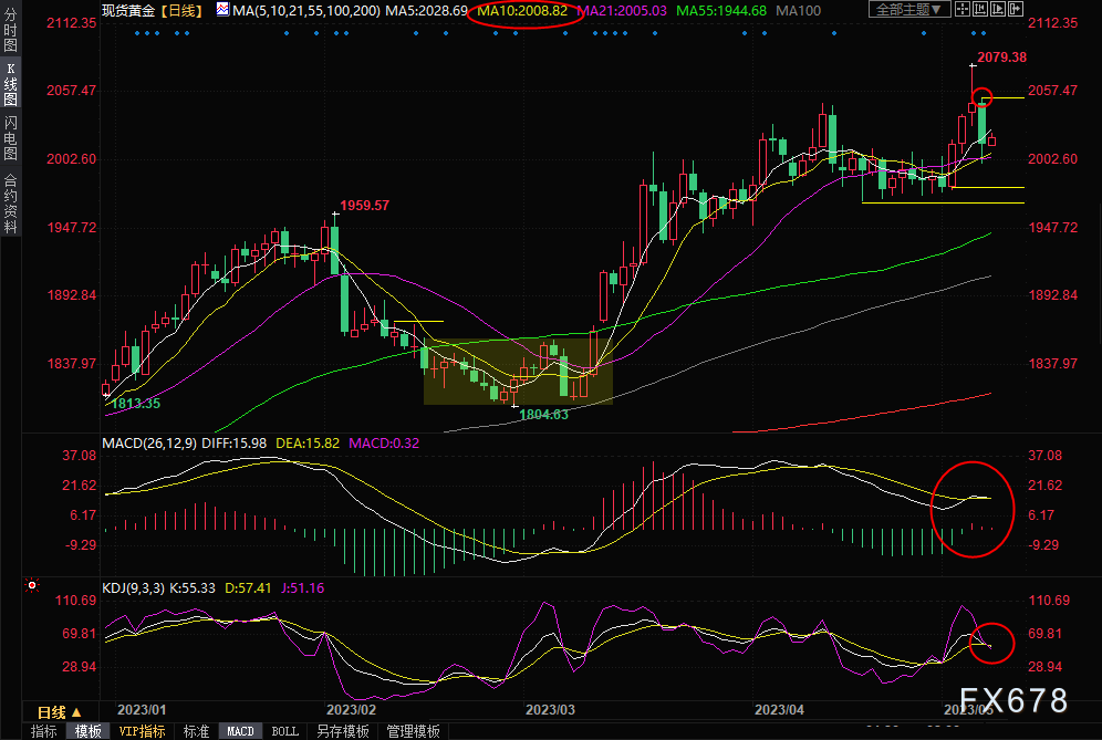 汇通财经APP讯——周一(5月8日)亚洲时段,现货黄金小幅反弹,目前交投于2021.92美元/盎司附近,一方面是金价上周五守住了2000整数关口,逢低买盘涌入支撑金价,另一方,市场对美国债务违约危机的担忧情绪也给金价提供避险支撑。不过,金价上周在历史高点附近受阻,短线仍需提防震荡回调风险。
