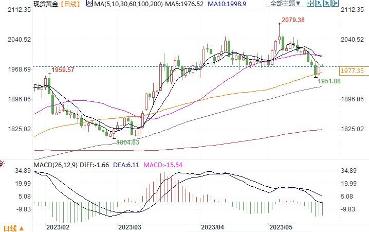 现货黄金日线图北京时间5月22日11:47,现货黄金报1977.80美元/盎司