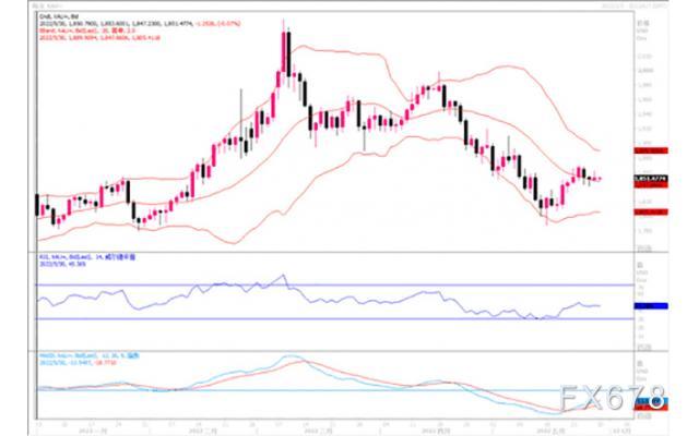 从技术上讲,黄金从上周的低点反弹,但波动性指标有所下降。尽管通胀可能已经见顶,但有专业分析机构分析认为,2022年期间,通胀仍将相当棘手。他们认为“通胀将大幅下降,美联储将停止大举加息,这可能是一种如意想法。”在随后的6、7月份时间里,市场已普遍定价了美联储将继续加息,这必将对黄金不利。黄金上周五的弱势上涨似乎有是二次冲顶的味道,现在4小时图上1860美元水平上方似乎已经形成了三个顶部,而周五即便在美国通胀数据不佳利多黄金的情况下,都未能产生大幅上走的行情,似乎说明目前市场上黄金多头的信心不足。本周还将迎来美国五月份非农数据登场,届时能否让黄金打破近期窄幅整理的走势局面,还需拭目以待了!