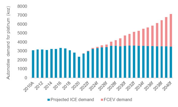 我们预测,仅内燃机汽车对铂金的需求将在2028年达到峰值,此后燃料电池车的普及将推动铂金需求的可持续增长。