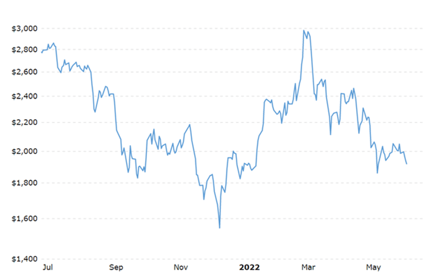 2020年,新冠肺炎疫情导致供应链中断,钯金供应减少。这就是为什么钯价会小幅波动。