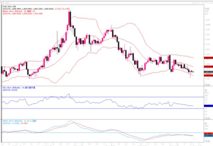 周二(7月5日),金价下跌逾2%,大幅跌破1800美元这一关键支撑位,原因是美元大幅上涨削弱了人们对这种非收益资产的兴趣。美市尾盘,现货黄金收报1764.64美元/盎司,大幅下跌43.34美元或2.40%,日内最高触及1812.04美元/盎司,最低触及1763.69美元/盎司。