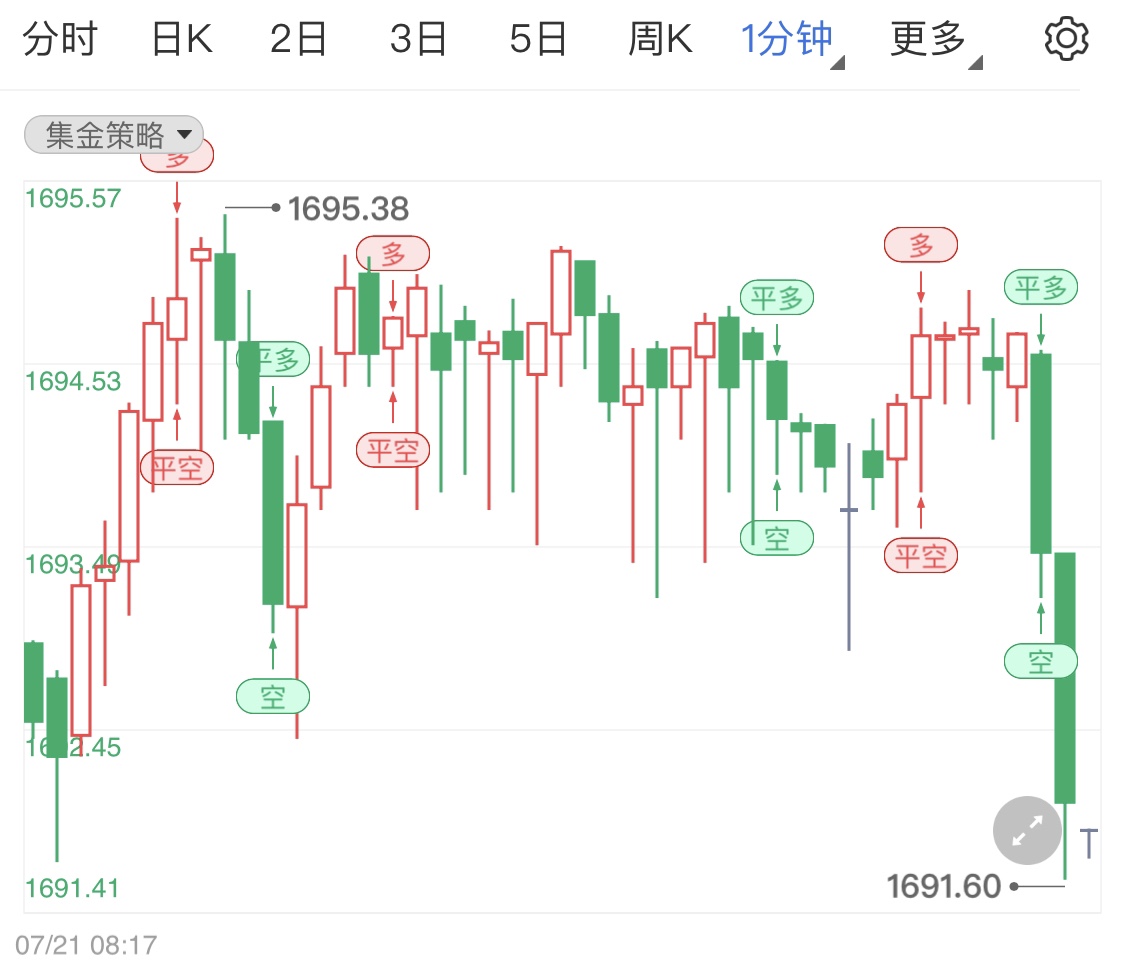 今日亚盘时段,金价震荡微跌,目前交投于1692美元/盎司附近,早盘黄金小阴线跌势。今日基本面关注20:15的欧洲央行公布利率决议,20:30的美国至7月16日当周初请失业金人数和美国7月费城联储制造业指数,以及20:45的欧洲央行行长拉加德召开货币政策新闻发布会和22:00的美国6月谘商会领先指标月率。