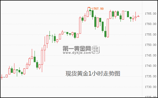 本交易日亚盘,现货黄金开于1764.76美元/盎司,最高上探至1765.83美元/盎司,最低触及1761.05美元/盎司,截至发稿暂报1764.99美元/盎司,跌幅0.07%。