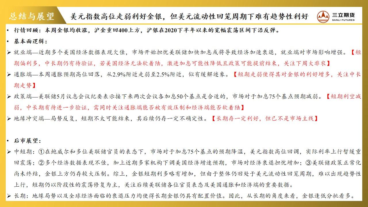 三立期货贵金属周报|期货
