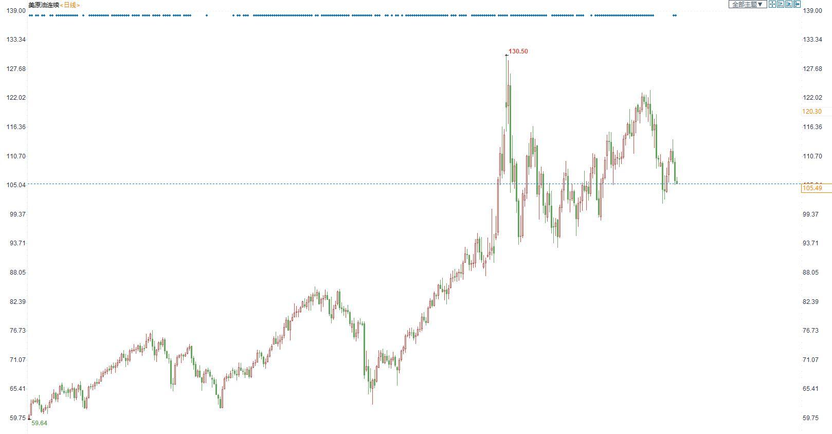 周五(7月1日)欧洲时段,美原油震荡小幅走低,目前交投于105.43美元附近,隔夜油价震荡下挫,OPEC维持原定的小幅增产的措施,消息称美国总统拜登准备月中访问沙特,此举有望给油价降温。同时,市场上,对于全球经济放缓的担忧持续升温,这个又给了油价沉重的压力。