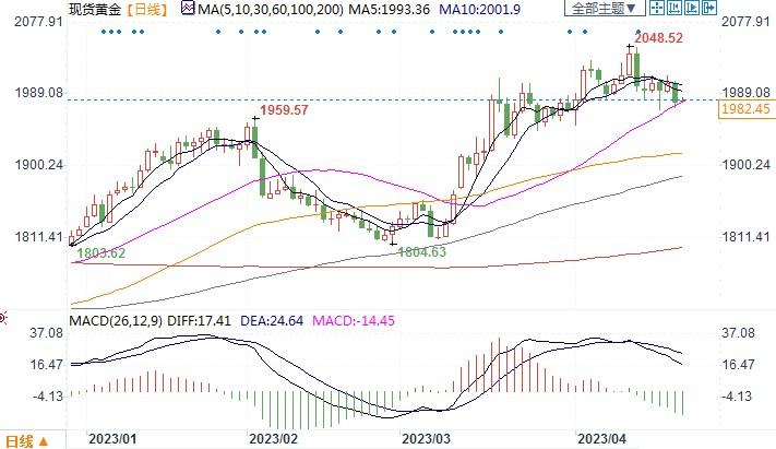 现货黄金日线图北京时间4月24日10:56,现货黄金报1982.45 美元/盎司