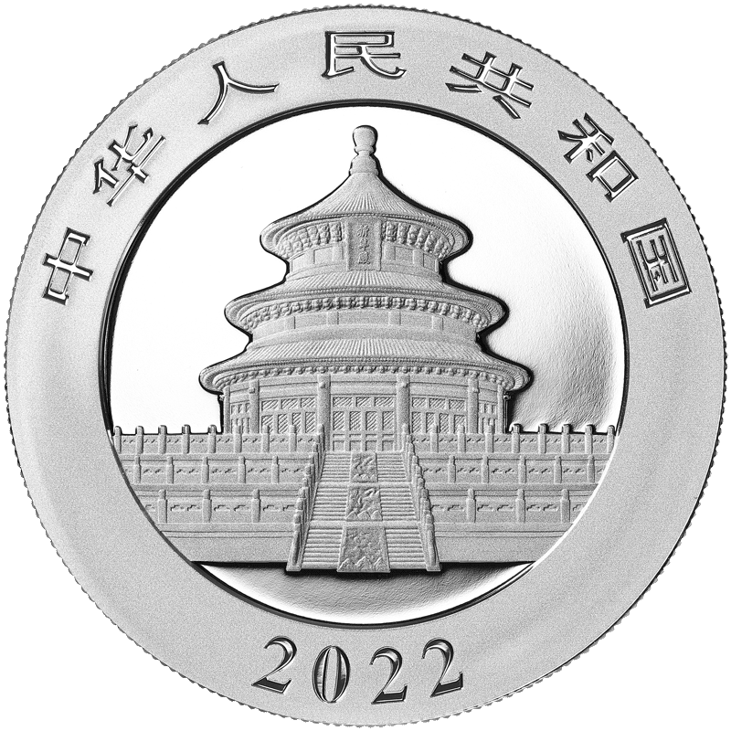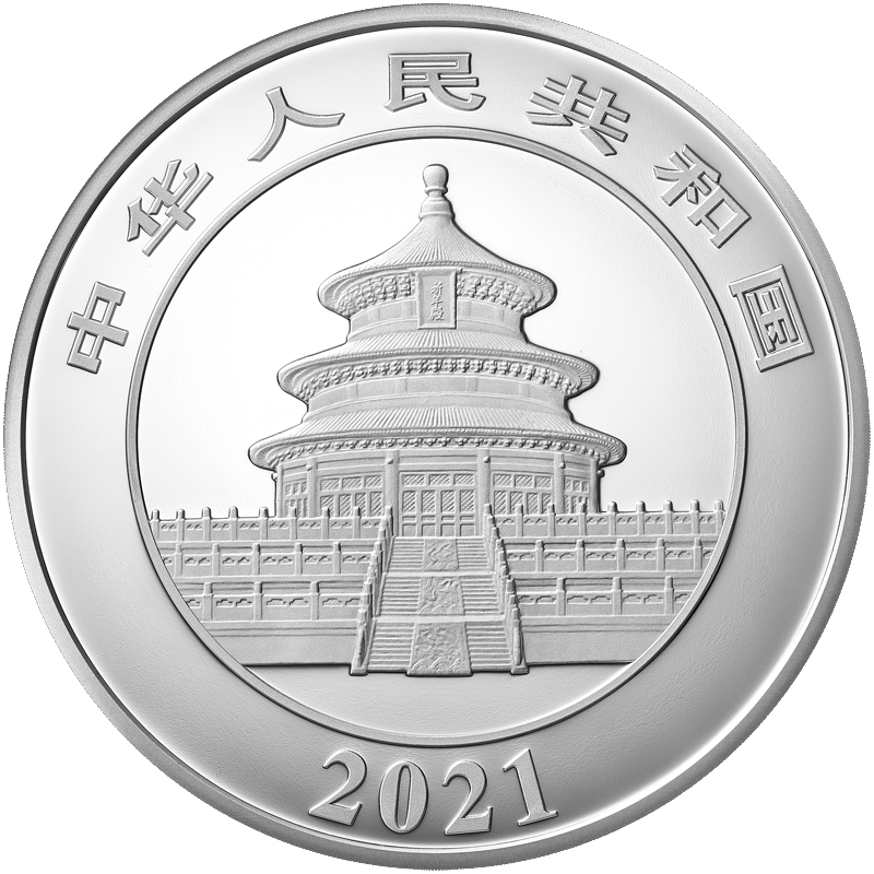 30克圆形银质纪念币为普制币,含纯银30克,直径40毫米,面额10元,成色99.9%,最大发行量10000000枚。正面图案为北京天坛祈年殿,并刊国名、年号;背面图案为大熊猫滑雪嬉戏场景,辅以“熊猫金币发行40周年标识”元素,并刊面额、重量及成色。
