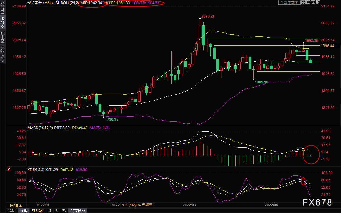 上方初步阻力在1950附近,然后是4月14日低点1960.58附近,若布林线中轨失而复得并回升至该位置上方,则削弱后市看空信号,进一步阻力在布林线上轨1981.33附近。