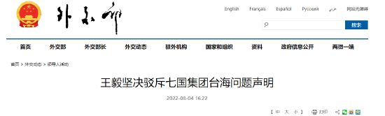 当地时间2022年8月4日,国务委员兼外长王毅在金边出席东亚合作系列外长会期间对七国集团外长发表涉台声明予以坚决驳斥。
