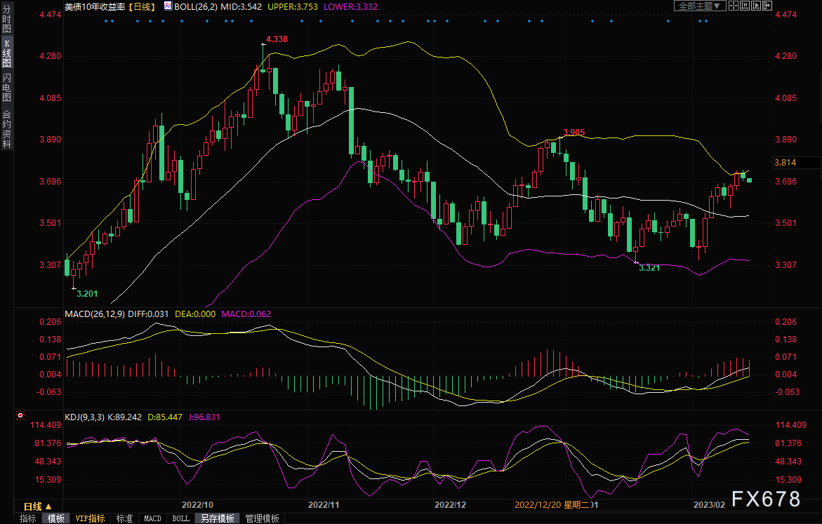 自本月初强于预期的就业数据公布以来,收益率稳步上升。美国在1月新增51.7万个工作岗位,而失业率触及3.4%的53年来的最低水平。
