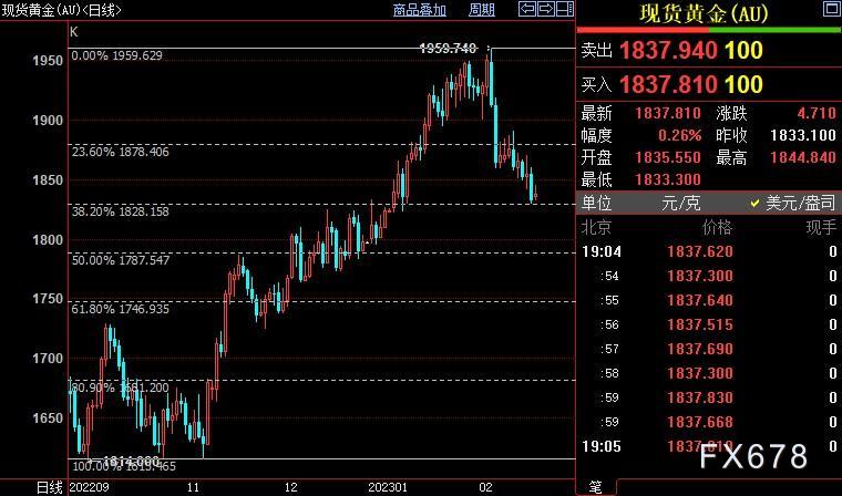 北京时间20:08,现货黄金上浮0.06%至1836.95美元/盎司;COMEX期金主力合约上浮0.07%至1846.5美元/盎司;美元指数下跌0.17%至103.688。