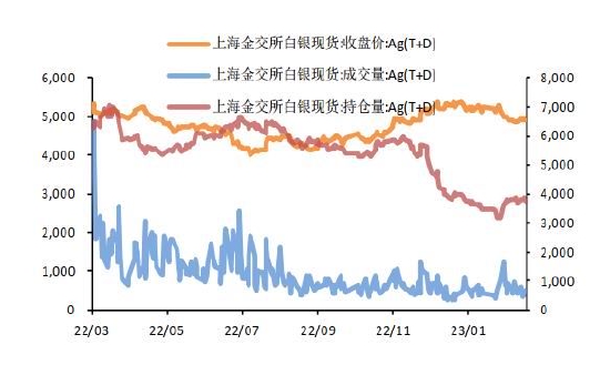截止2023年2月24日,SLV白银ETF持有量为15005.23吨,较1月增加69.54吨,截止2023年1月24日,COMEX白银非商业多头净持仓为25684张,较1月减少5343张。