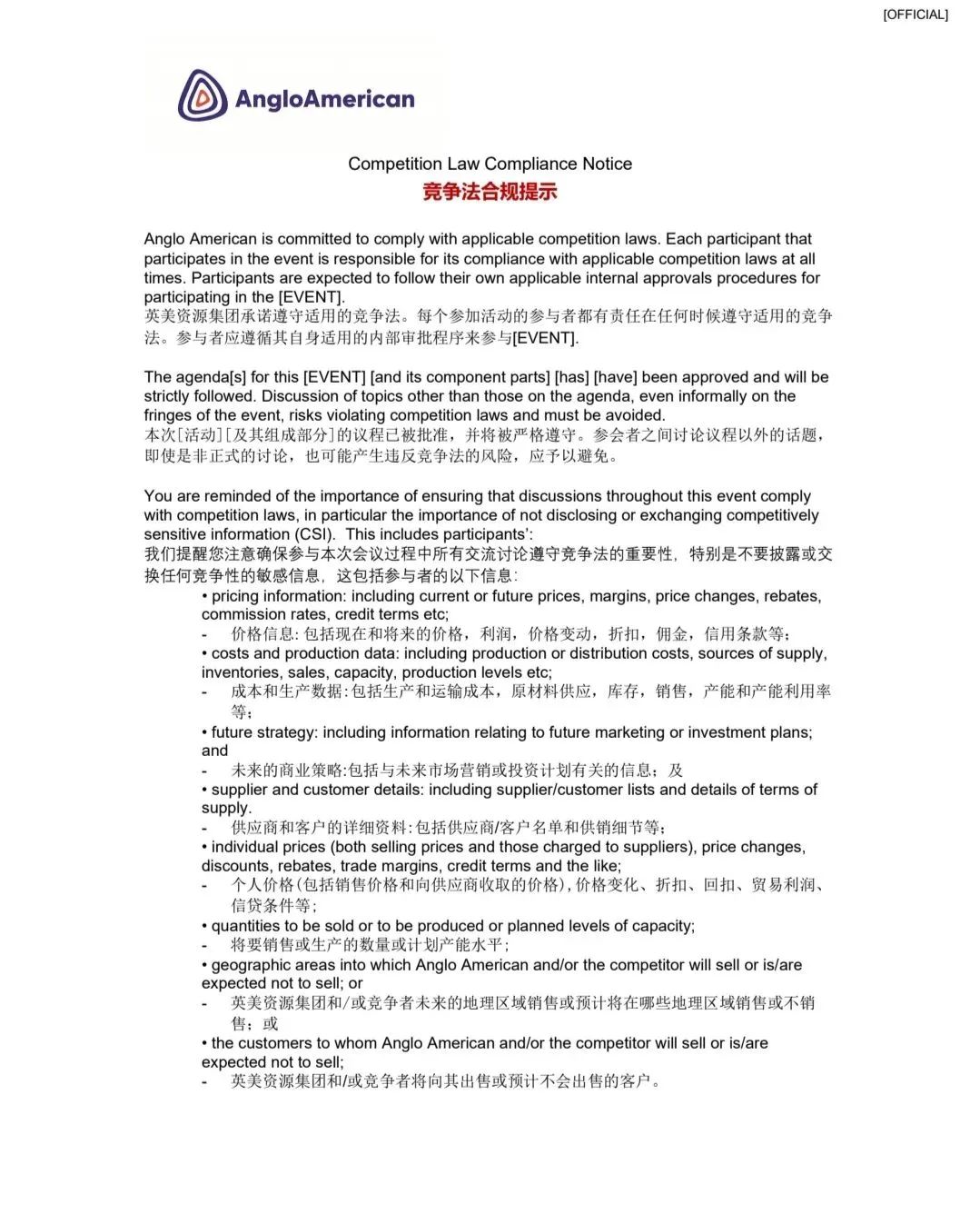 英美资源集团(Anglo American plc)是一家全球领先的多元化矿山企业,公司的资产组合涵盖世界一流水平的采矿作业和富蕴的矿石储量,产品涵盖钻石(经由旗下戴比尔斯集团)、铜、铂族金属、铁矿石、煤炭和镍。