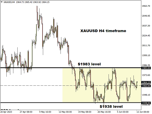 FXTM指出,过去几周,黄金价格陷于支撑位1938美元/盎司和阻力位1983美元/盎司组成的区间内。