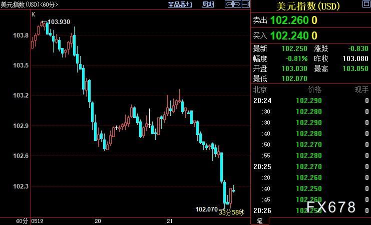 北京时间20:25,现货黄金上涨0.91%至1862.33美元/盎司;COMEX期金主力合约上涨1.04%至1861.3美元/盎司;美元指数下跌0.75%至102.26。