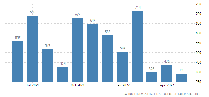 报告显示,美国5月份新增39万个非农就业岗位,好于市场预期的32.50万。显示出尽管人们担心经济放缓和通胀飙升,但美国就业市场仍旧保持温和增长态势。