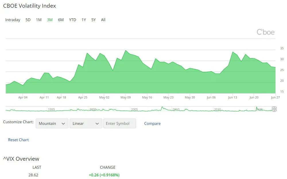 数据来源:芝商所 QuikStrike,数据截至2022年6月28日图表6:CBOE 波动率指数走势