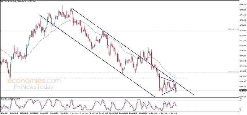 24K99讯 周四(9月22日)亚市尾盘,现货黄金维持跌势,金价现报1659美元/盎司附近,日内大跌近15美元。知名财经资讯网站Economies.com周四最新撰文,对日内黄金走势进行前瞻分析。