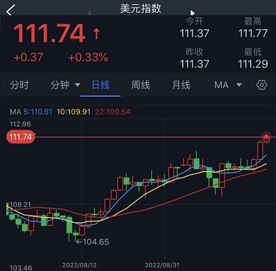 分析师指出,强势美元令金价承压。美元指数亚市盘中一度升至117.77,刷新20年高位。