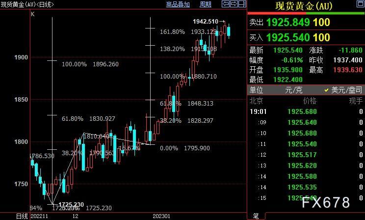 汇通财经APP讯——周三(1月25日),现货黄金下跌,脱离隔夜创下的去年4月下旬以来新高1942.39美元/盎司,因部分投资者在美国第四季度GDP数据公布前平仓,美元指数企稳。华尔街投资者似乎对美联储成功抑制通胀充满信心,但美联储不断强调抗通胀过程艰难且漫长。