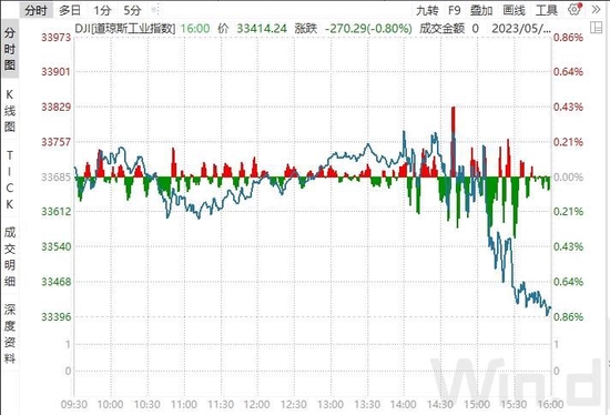 美国三大股指全线收跌,道指跌0.8%,标普500指数跌0.7%,纳指跌0.46%。沃尔格林联合博姿跌4.6%,安进跌2.82%,领跌道指。万得美国TAMAMA科技指数跌0.33%,脸书跌0.92%,特斯拉涨0.19%。中概股涨跌不一,中阳金融涨59.97%,乐居跌22.83%。