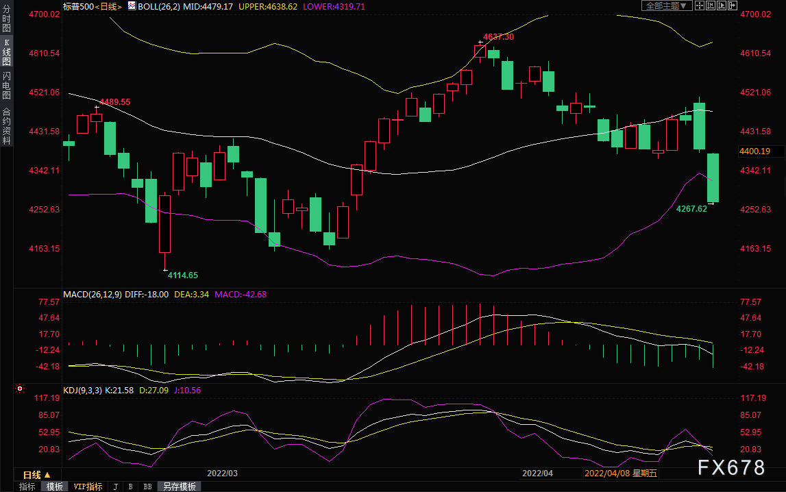 这是标普500指数和纳斯达克指数连续第三周下跌,道琼斯工业指数连续第四周下跌。道指上周五下跌2.82%,创2020年10月以来的最大单日跌幅。