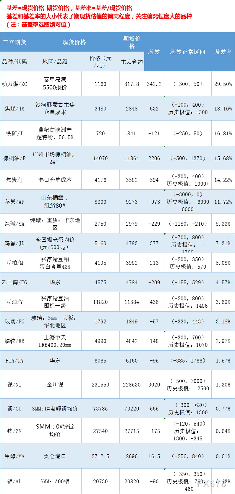 三立期货4月28日基差:一张图尽览有色金属、黑色系、能源化工和农产品基差(按基差率从大到小排序)|期货 来源:正大期货 作者:正大国际期货 时间:2022-04-28 三立期货4月28日基差:一张图尽览有色金属、黑色系、能源化工和农产品基差(按基差率从大到小排序)。