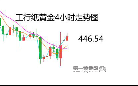 纸黄金受益上涨,下探442元回升大涨至447元附近,截至周一早间发稿,报价在446.54元/克。