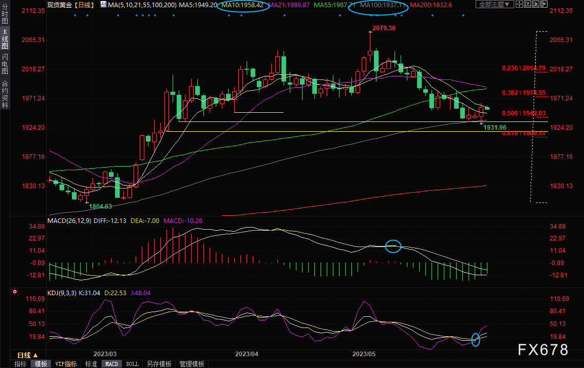 汇通财经APP讯——周三(5月31日)亚洲时段,现货黄金窄幅震荡,目前交投于1955.19美元/盎司附近,守住了隔夜大部分涨幅。周二金价上涨15美元,100日均线失而复得后,多头强势反扑,收报1959.17美元/盎司,对美国债务上限协议的乐观情绪打击美元和美债收益率,美债收益率从两个半月高位大幅回落,给金价反弹提供机会,地缘局势紧张也吸引了一些逢低买盘支撑金价。