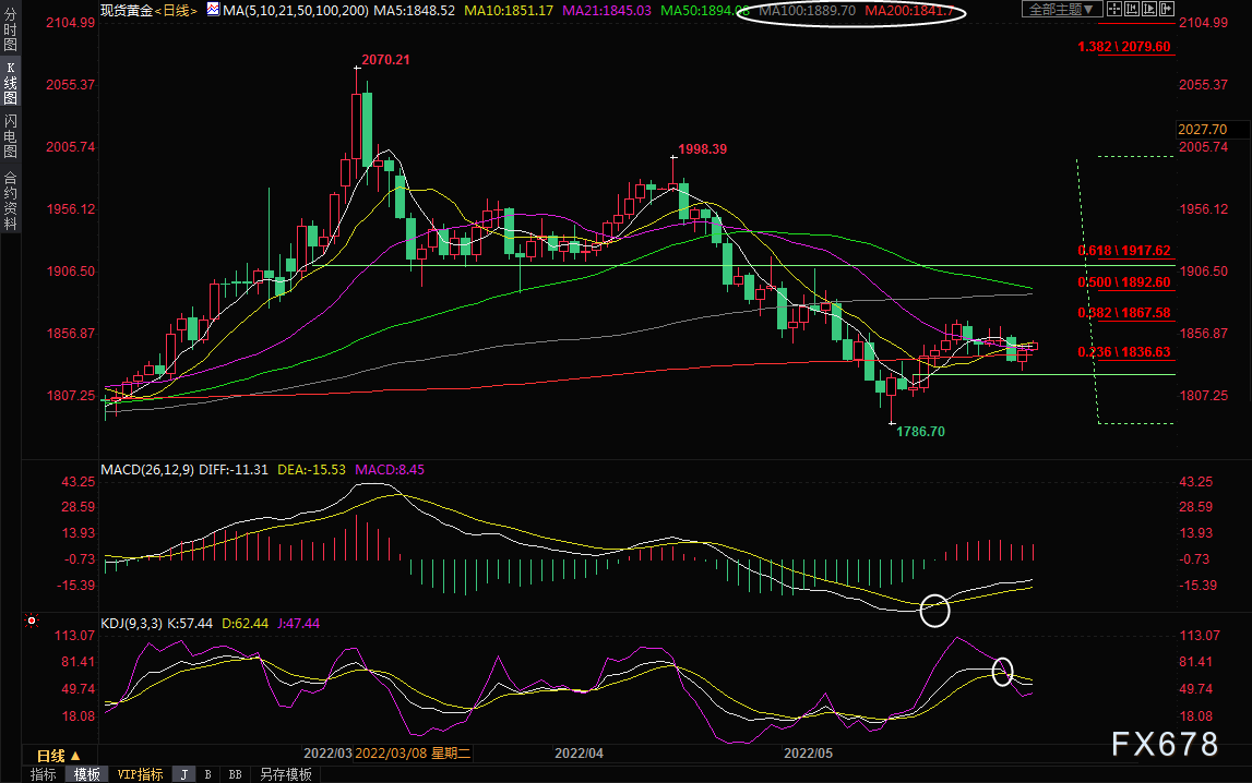 下方继续关注200日均线1841.70附近支撑,若金价再次回落至该位置下方,则增加后市看空信号。
