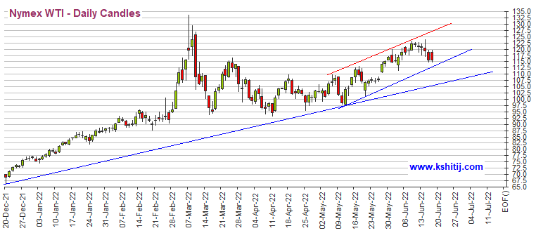WTI原油期货在向上测试120美元/桶后跌破117.50美元/桶。只要保持在117.50美元/桶下方,那么WTI油价仍有跌向112.50美元/桶的空间。