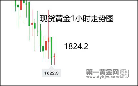 日内黄金一直受压在1830关口下方,欧盘虽有冲高,但迅速回落。截至周三下午发稿,黄金报价在1824.2美元/盎司。