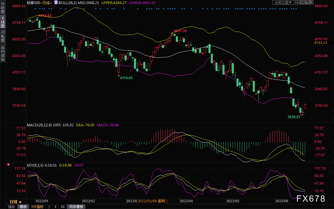 市场普遍反弹,标普500指数11个主要板块均上涨,上周该指标股指录得2020年3月以来的最大单周百分比跌幅。 投资者正试图评估股市能跌到什么程度,评估美联储激进加息以抑制高通胀可能给经济造成的风险。本月早些时候,标普500指数从1月触及的历史高点下跌超过20%,确认进入熊市。