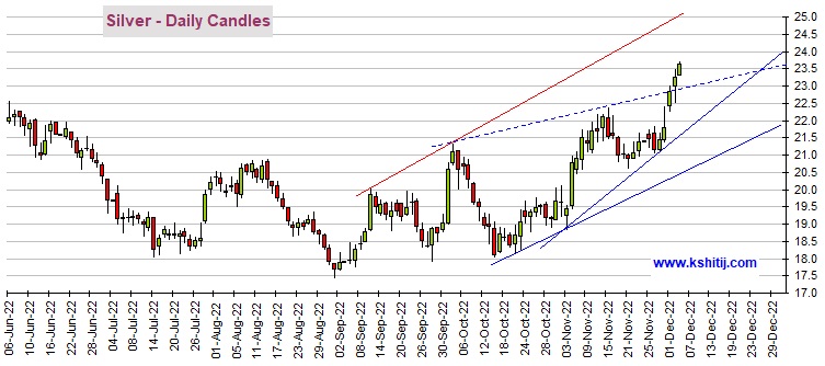 白银方面,Kshitij咨询服务团队表示,白银期货继续上涨。前景前景看涨,有望测试24-25美元/盎司。短期支撑位目前在23.00-22.00美元/盎司。