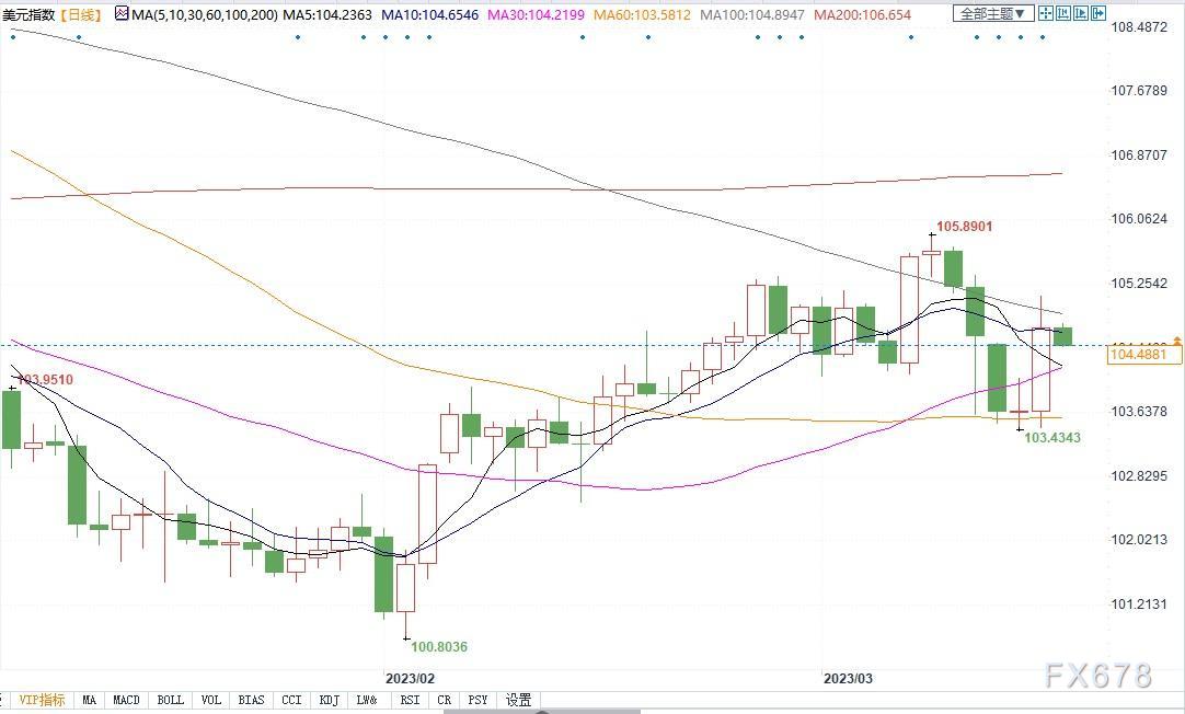 美元指数日线图北京时间3月16日13:51,美元指数报104.47