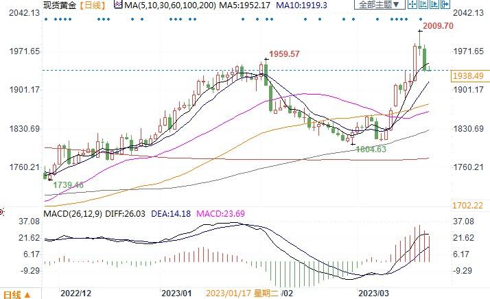 现货黄金日线图北京时间3月22日13:41,现货黄金报1938.49美元/盎司