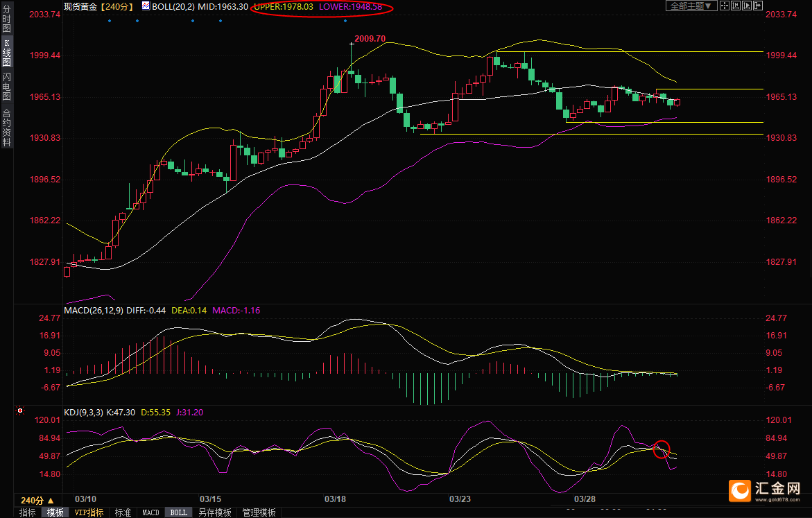 若金价意外强势顶破布林线上轨1978附近阻力,则有望再度上探2000关口附近阻力,并可能会启动新一轮涨势。