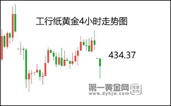 纸黄金上周尾盘受益上行,但还是未能突破上方440关口的压制,凌晨再次回落,截至周一早间发稿,工行纸黄金报价在434.37元/克。