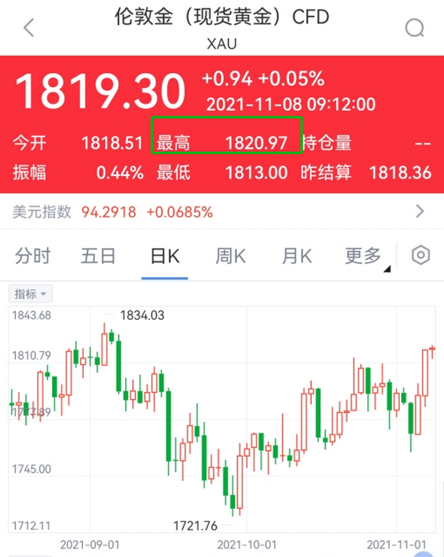 现货黄金向上触及1820美元/盎司 为9月7日以来首次 来源:正大期货 作者:正大国际期货 时间:2021-11-08 现货黄金向上触及1820美元/盎司,为9月7日以来首次。 中信期货在周报中表示,贵金属当下具有阶段性上涨的动力,因此建议偏多操作。关注基建计划通过带来的回调买入机会。