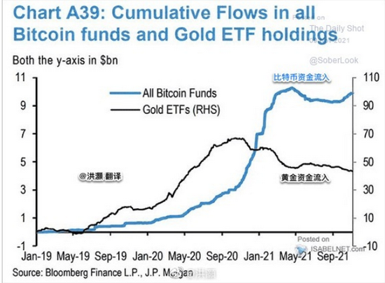 交银国际董事总经理、研究部负责人洪灏:黄金资金流入 vs 比特币资金流入。完美解释了为什么比特币新高,而黄金盘整。两类资产都没有收益现金流,无法估值,其实都是投机。