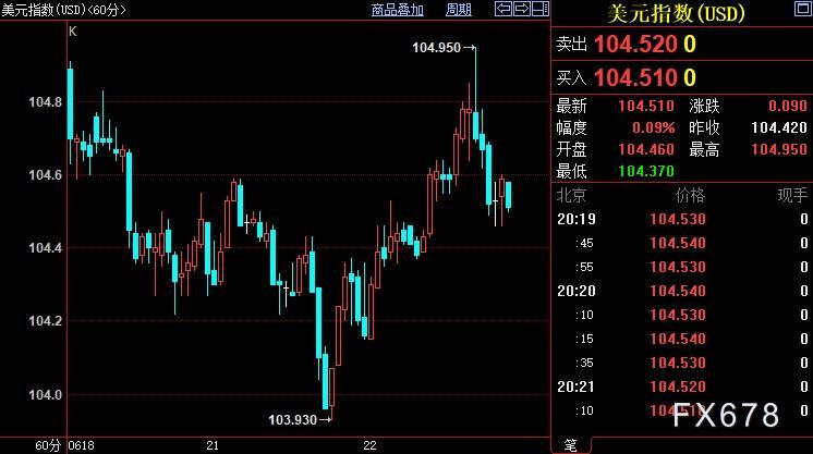 北京时间20:20,现货黄金上涨0.30%至1838.43美元/盎司;COMEX期金主力合约上涨0.14%至1841.4美元/盎司;美元指数上浮0.10%至104.5243。