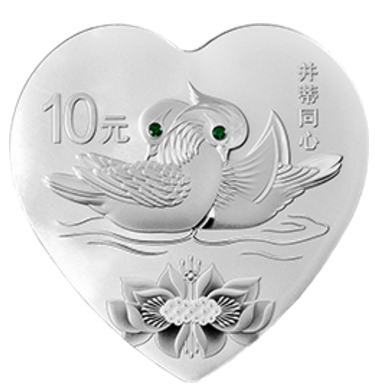 2017年的《并蒂同心》心形金银币