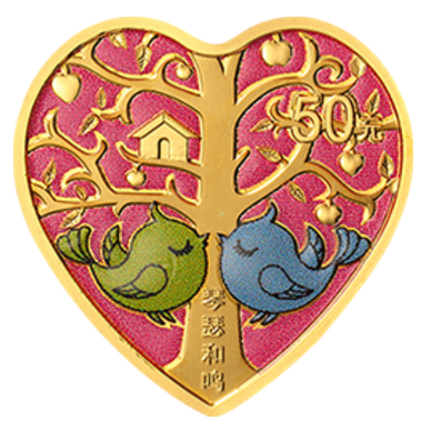 2021年的《琴瑟和鸣》心形金银币